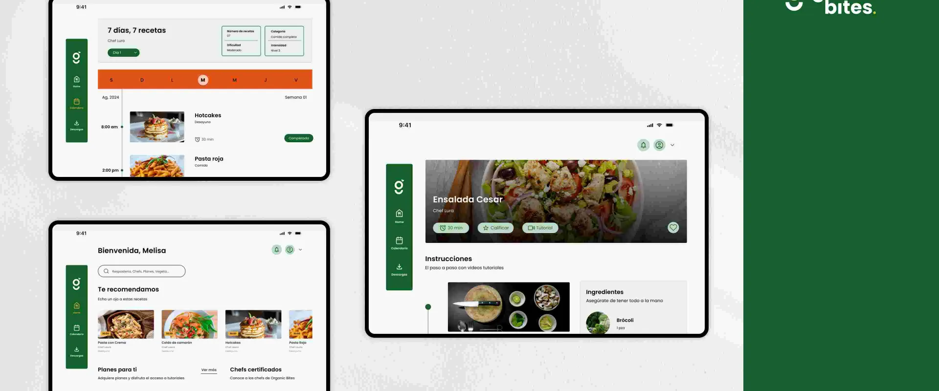 La propuesta se inspira en un estilo de vida consciente y sostenible, donde la tecnología facilita el día a día sin renunciar a la calidad. A través de una experiencia digital clara y cercana, Organic Bites integra calendarios de recetas, tutoriales paso a paso, seguimiento de pedidos y notificaciones inteligentes en distintos dispositivos.