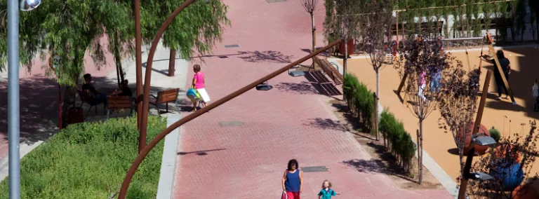 Actuación situada en Alboraia, municipio lindante a Valencia, donde surge la oportunidad de soterrar las vías de la línea del metro que dividen el núcleo urbano en dos partes, casi incomunicadas. Aprovechando el proyecto de soterramiento, el Ayuntamiento apuesta por convertir la traza del tren en un paseo peatonal, un eje urbano ligado a una serie de actuaciones municipales con el objetivo de crear una nueva red de espacios públicos que vertebren la ciudad. Este eje, garantiza la conexión entre las dos partes, pero busca también tener un interés en sí mismo, alojando zonas de descanso y encuentro para la ciudadanía.