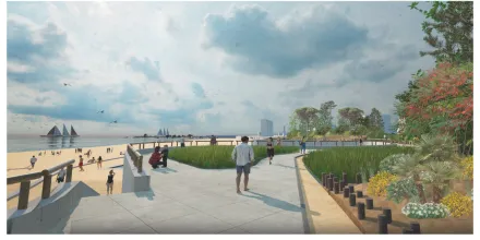 A partir de esta reflexión, el proyecto plantea una pregunta clave: ¿cómo evolucionará el litoral de Barcelona ante el aumento del nivel del mar? La propuesta explora la naturalización urbana como respuesta a la progresiva pérdida de playas, asumiendo una posible “obsolescencia programada” de las infraestructuras recreativas actuales y proponiendo soluciones adaptables a un paisaje costero en constante transformación.