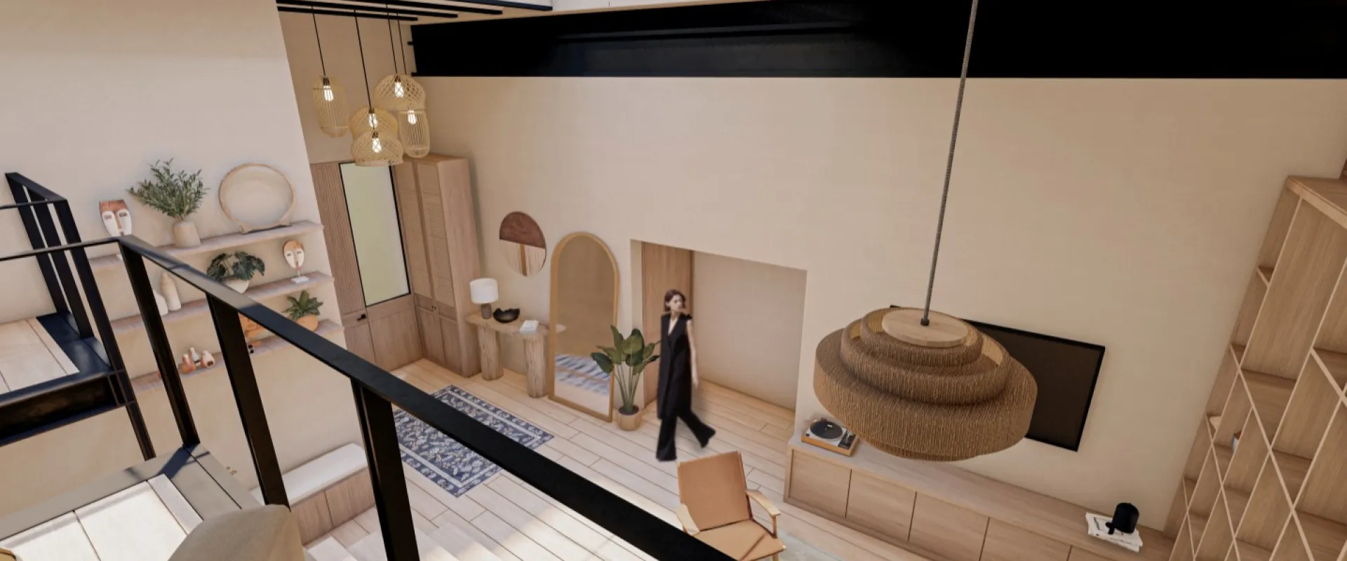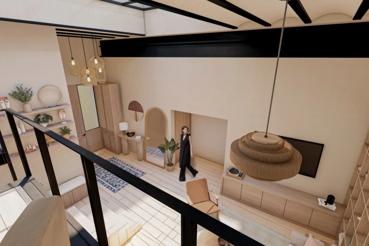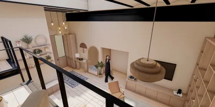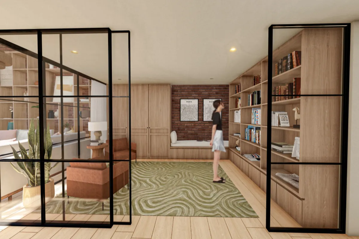 El proyecto consiste en crear un espacio que sea adecuado para personalidades artísticas y creativas que viven una vida social activa y se sumergen en las artes, la lectura, música y con un encanto especial por la naturaleza.