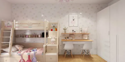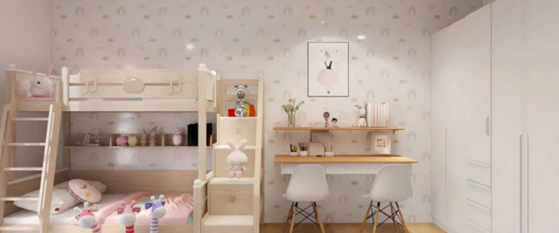 La propuesta reorganiza la planta para integrar zonas comunes amplias, habitaciones infantiles personalizadas y espacios híbridos como oficina y almacenaje. El uso de mobiliario a medida, materiales cálidos y una paleta neutra refuerza la sensación de orden, confort y armonía en todas las estancias.