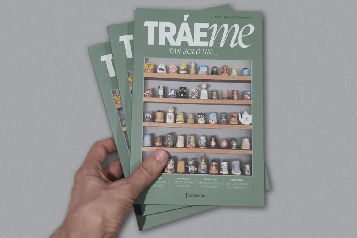 TRÁeme es una publicación que narra la experiencia e historias de más de 30 años de la madre del autor, quien cuando alguien cercano se iba a un museo, iglesia, o de viaje a una ciudad, región o país, les pedía que le trajeran un souvenir, tan solo uno, tan solo un dedal. Con los años y las experiencias vividas, la madre de Miguel reúne una colección de más de 300 dedales de diferentes formas, tamaños y materiales, una manera de rememorar la experiencia vividas de quien le regala, y la vez un recuerdo de su relación. Por ello, el autor dedica esta revista a estos souvenirs que sirven de guía turística de todos estos lugares y experiencias.