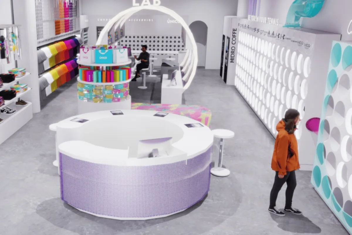 La experiencia en tienda consiste en participar dentro de un LAB creativo aplicando técnicas como el hidrodipping, aerógrafo, corte y/o grabado laser, previa visualización digital del diseño elegido o creado. La experiencia online permite elegir el calzado lienzo, elegir un diseño de un catálogo o crear uno propio, ver en video el momento de creación dentro del LAB y monitorear la fase del proceso hasta recibirlo.