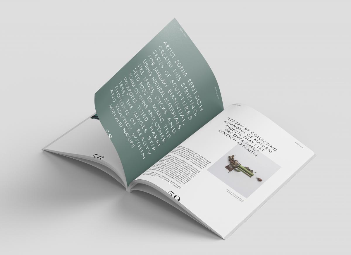 Se eligió hacerla completamente en inglés pues tiene proyección internacional. Cada número de la revista maneja un tema principal en torno al cual giran todos los artículos. En este primer número el tema es “Revolución.” Dentro de la revista existen distintas categorías como son: Arte y Diseño, Fotografía, Diseño Editorial, Tipografía, Pintura, Street Art, Bouquets, Ilustración y Cultura.