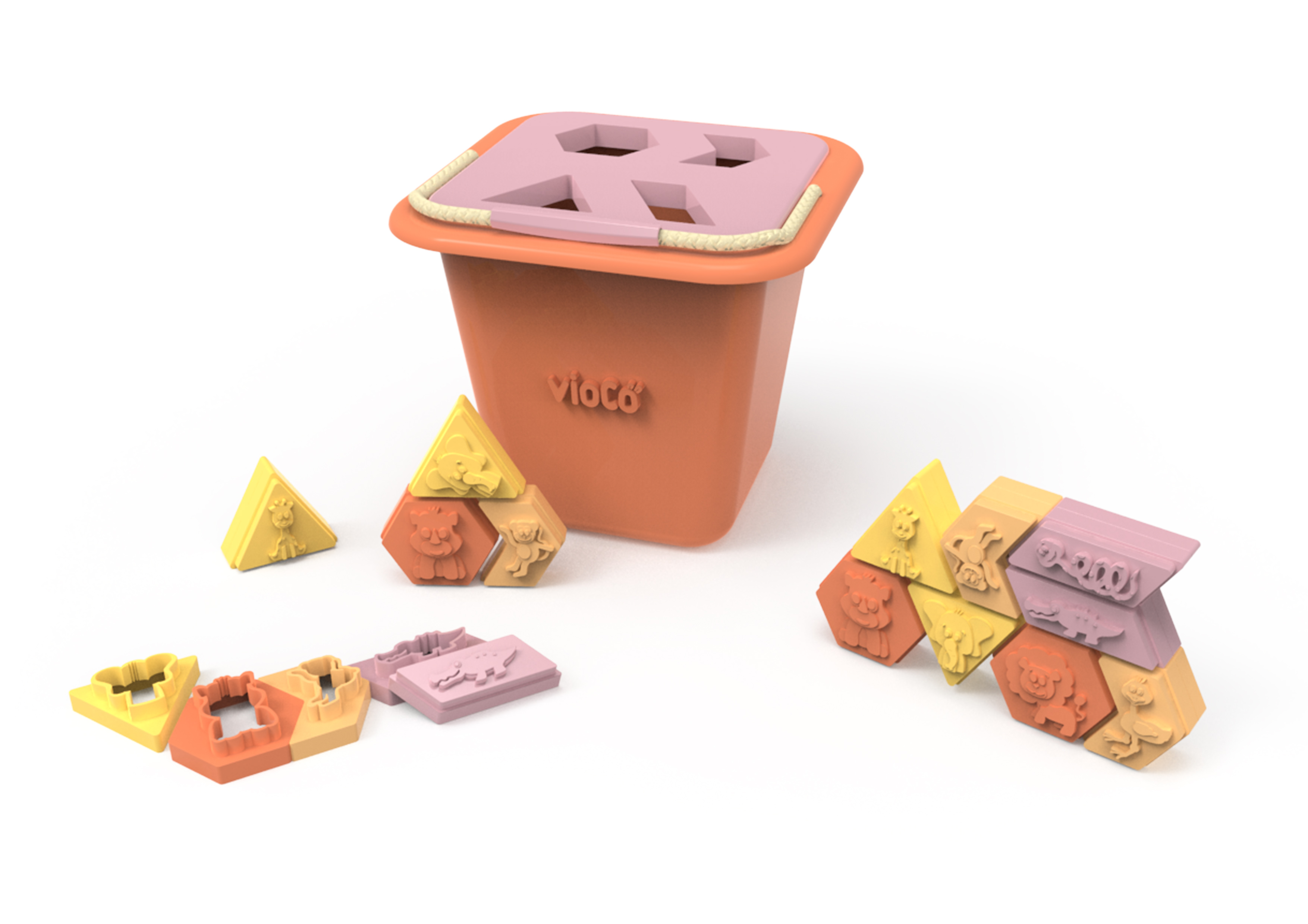 Vioco da nombre a una marca sostenible de juguetes fabricados con biomaterial. Busca diseñar cada juguete desde el respeto por el medioambiente y un cuidado muy especial hacia el desarrollo y educación del niño.